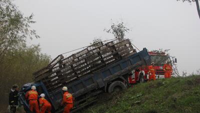 清晨司機疲勞駕駛翻車一人被困 液壓千斤頂施救援