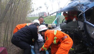 11月15日清晨,湖北省襄陽市一輛裝載鐵架小型貨車行駛至襄南大道尹家河橋附近時,車輛追尾前方一輛道路清掃車后失控沖下路基,致貨車司機被困駕駛室。襄陽消防支隊萬山中隊于7時51分接警后,調(diào)集1輛搶險救援車、1輛水罐消防車10名消防官兵趕赴現(xiàn)場救援。